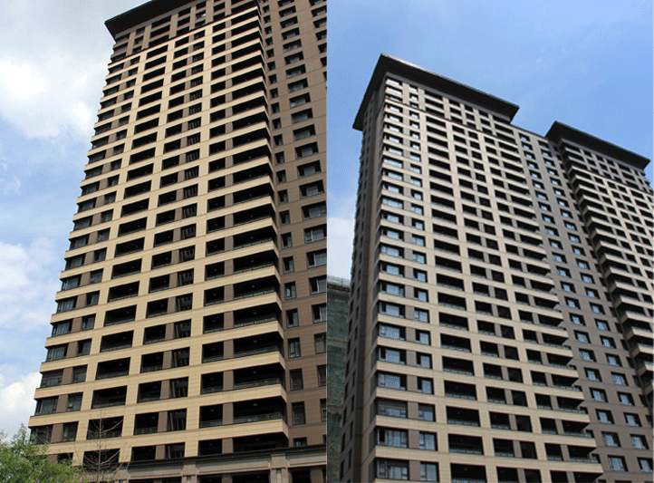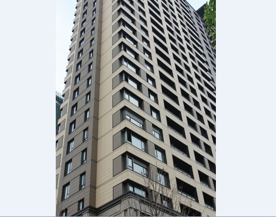 該項目位于江蘇常州市新北區(qū)飛龍西路與天山路交叉路口,項目規(guī)劃設(shè)計陶板幕墻總面積 13113.㎡,建筑物地上層數(shù)33層,總建筑面積198474.7㎡,于2013年3月竣工。項目采用樂普T18厚、由淺灰到深灰顏色相互搭配的灰色系陶板。